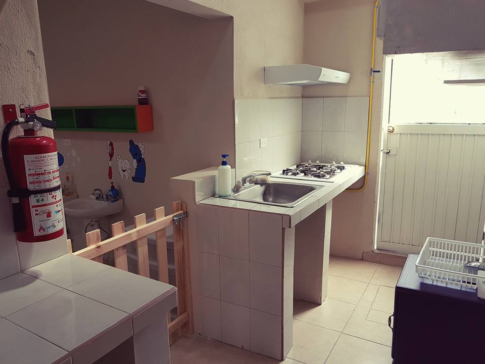 Nuestra cocina es un espacio limpio, ordenado y funcional, equipado con estufa, tarja y utensilios esenciales para la preparación de alimentos frescos y nutritivos. Cuenta con medidas de seguridad como un extintor y una reja protectora, que garantizan un ambiente seguro para todos. Ideal para ofrecer comidas saludables a los pequeños bajo estrictas normas de higiene.
